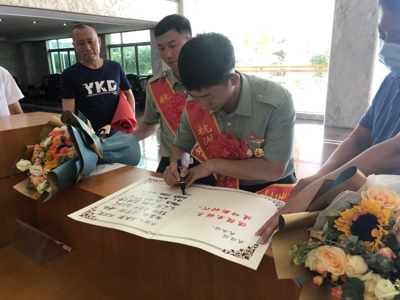 候選人副鎮(zhèn)長(zhǎng)余添宏與劉德偉、劉品添兄弟倆親切握手并合影,歡迎他們回到家鄉(xiāng),贊揚(yáng)劉德偉、劉品添父母為國(guó)家培養(yǎng)出優(yōu)秀人才。希望兩兄弟能夠繼續(xù)保持軍人本色,以積極的態(tài)度迎接新挑戰(zhàn),以后在各自的崗位上建功立業(yè)。